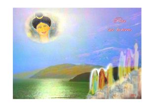 la Mère Divine éternelle assise dans le lotus du cœur, monte dix mètres vers nous.